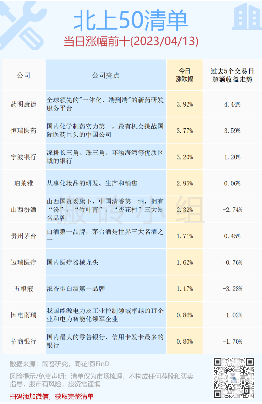 北上50榜单上榜的大多是医药消费,北上当前有买权重进行防守的感觉。
