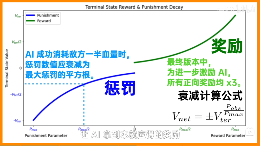 另外在训练AI刚开始的时候,因为能力比较弱,如果输了就给负分,会导致AI进入下坠螺旋,也就是一直怂在角落不敢进攻,效果是一定不好的。后面他做了一个改动,将BOSS扣血的正向奖励*3,训练效果就直线上升了。