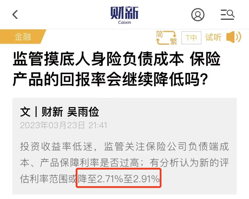 评估利率基本就是预定利率的上限,一旦下调,预定利率也不太可能坐得住。也就是说,未来通过投保储蓄险(如增额终身寿险),能拿到的收益将会变少。