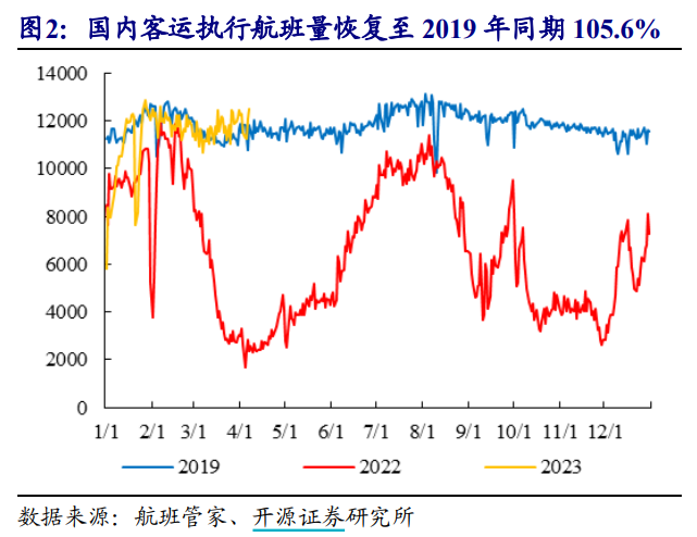 高铁抢不到大家估计就要去坐飞机了,机票价格最近折扣力度都一般,涨价了不少。从航班量的角度来看,今年航班量已经超过了2019年,航司排班比较积极,毕竟能赚钱嘛。