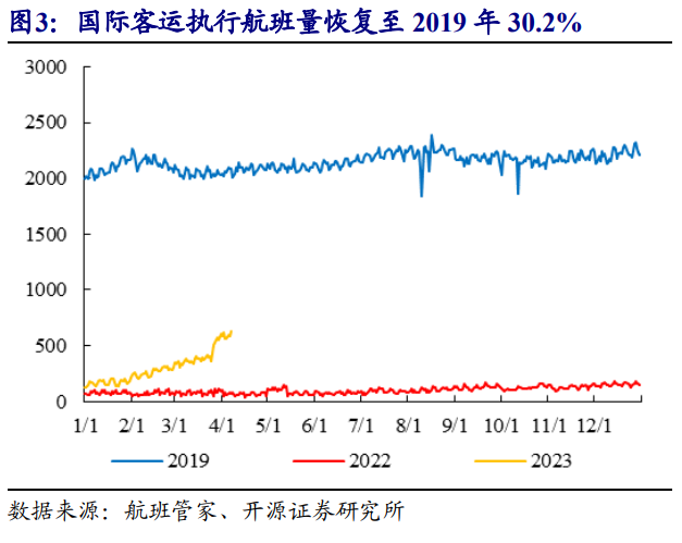 国际航班由于是今年一季度才正式开始恢复,所以跟2019年还有比较大的差距,现在这个图的感觉就是在稳定爬坡。我记得航线调整一般是以季度为单位的,二、三季度会随着客流增加,航班会有向上的调整,估计在下半年会恢复到2019年的大部分状态。拍个脑袋,国庆节的时候估计会有不少人出国。