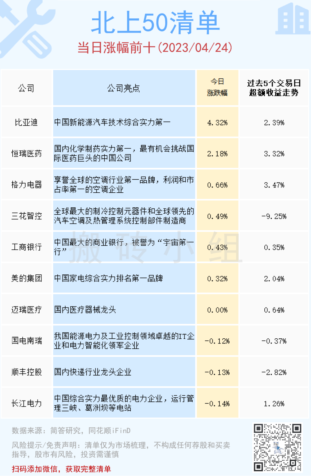 北上50榜单很惨烈了,只有6只上涨,大跌的还不少,亏钱效应满满。。
