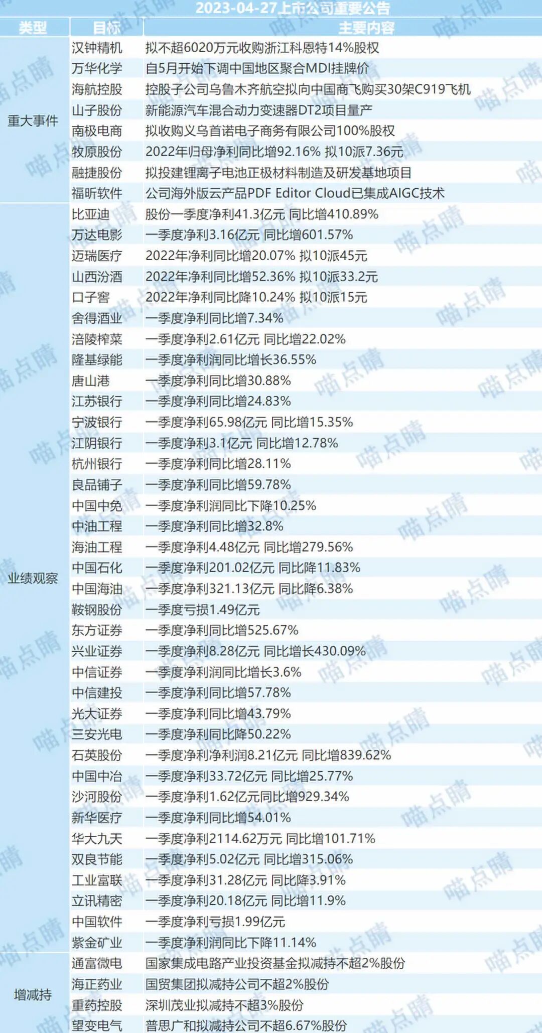 4、山西汾酒Q1净利润48.19亿元,同比+29.89%,比前面的预报好不少。汾酒成长性略有下滑,但依然是白酒中最能打的,超预报的表现,说明复苏在线,看看今天市场如何反馈。