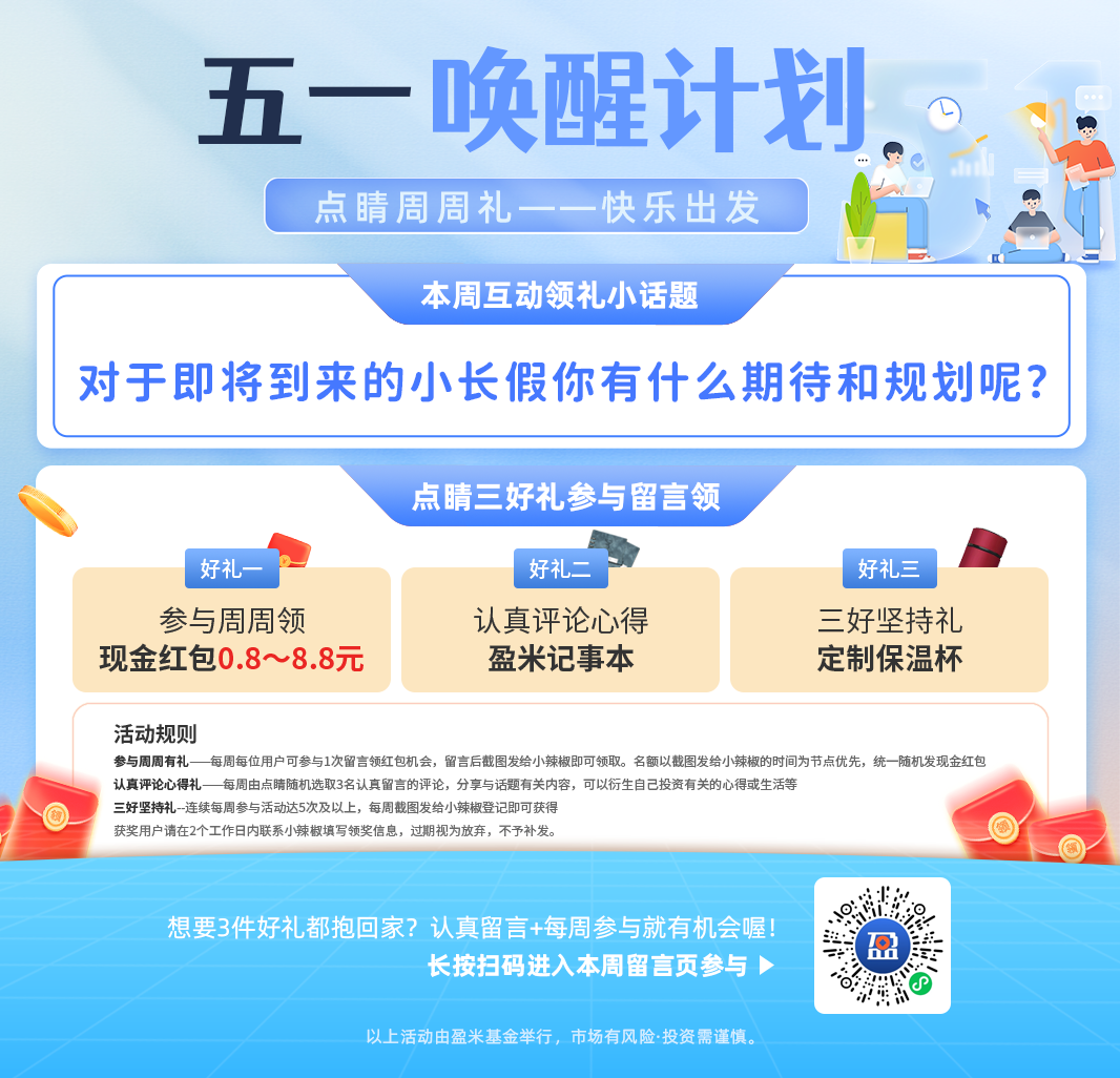基金销售和基金投顾服务由盈米基金提供。如需购买相关基金产品,请您提前做好风险测评,并根据自身的投资目的、投资期限、投资经验、资产状况等判断,购买与自身风险等级和承受能力相匹配的基金产品或基金投资组合策略。