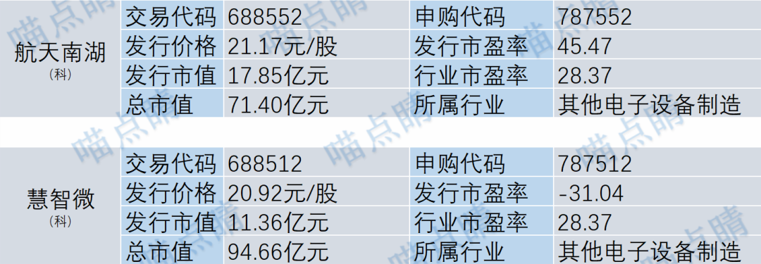航天南湖主营业务是从事防空预警雷达研产销和服务。慧智微是一家为智能手机、物联网等领域提供射频前端的芯片设计公司。前者发行市值对应破发率较高,后者亏损上市,破发率相对较高。