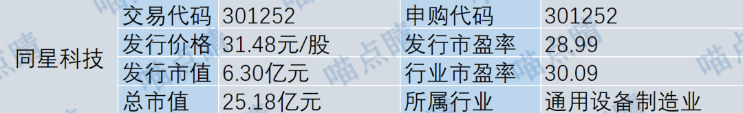 同星科技主营业务为制冷设备相关产品的研产销,公司各项指标对应破发率较低。