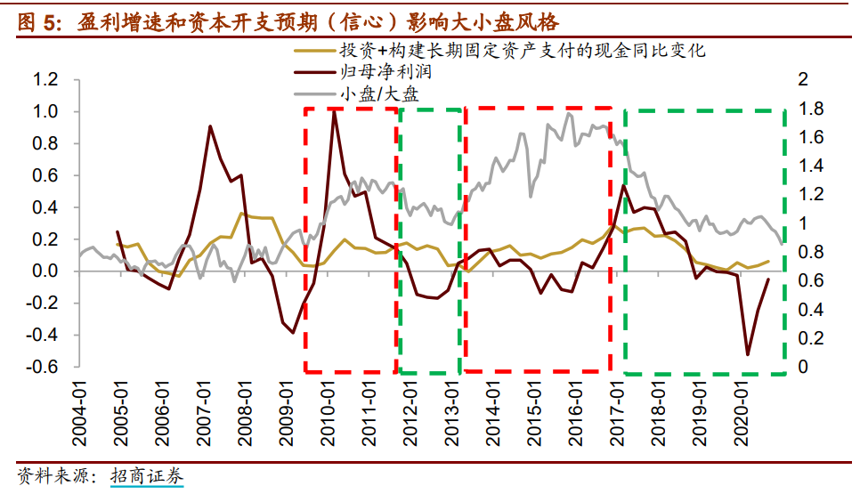 招商策略曾经做过一个统计,对大小风格起关键作用的是对于经济、产业趋势的前景信心。当预期比较低的时候,小盘超额收益会比较强;当预期比较强的时候,大盘的超额收益会比较强。