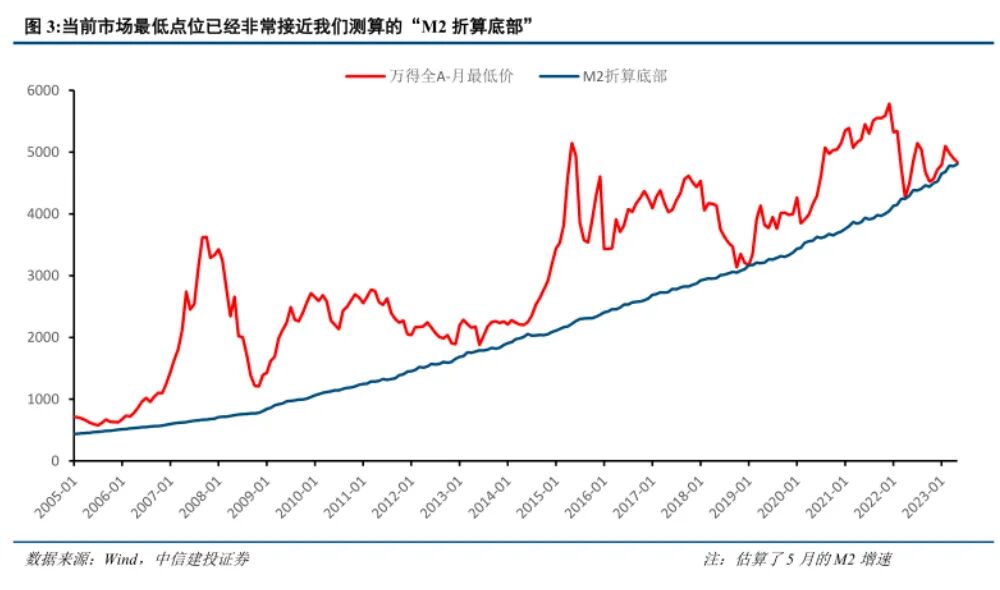 今天还看到一张图比较有意思,券商用M2的方法测算了一个底部指标,当下看市场已经接近这个底部了。从这个角度上看市场真不贵,规律还没破就先相信。
