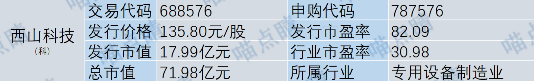 西山科技主营业务是手术动力装置的研产销,牵头起草了6项手术动力装置相关国家医药行业标准。公司发行市值对应破发率较高。