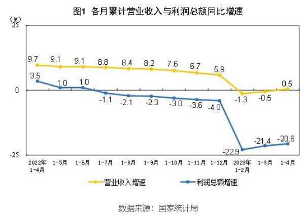 1至4月份全国规模以上工业企业利润同比-20.6%,营业收入同比+0.5%。反映出4月工业生产继续恢复,企业营收增长加快,利润降幅收窄。