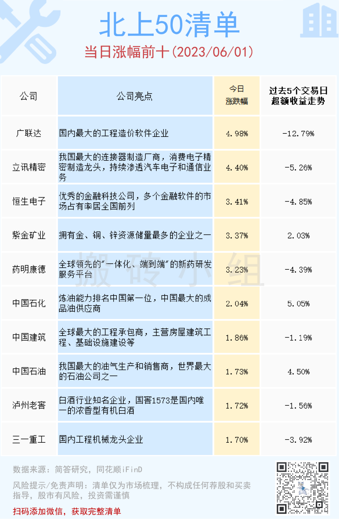 北上50榜单今天更新了,有3只个股变动。更新后的榜单波动不大,没啥特别的。