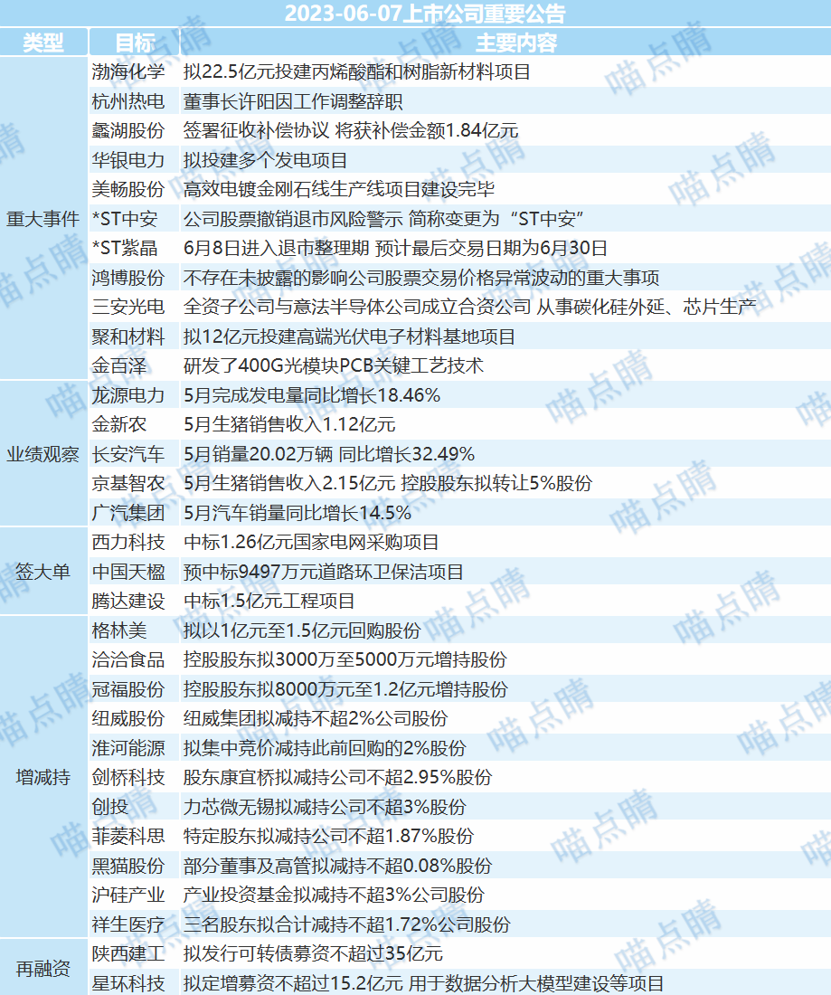4、沪硅产业持股20.76%的股东大基金拟减持不超3%公司股份。沪硅算是今年半导体方向比较能打的仔,年内涨了24%,不过这也遭来了大基金的无情减持。。大基金例行公事的减持已经算得上预期内的事,短期有情绪影响,长期来看,退出意味着会有新的选择。