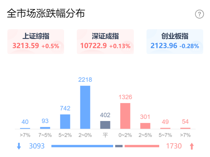市场今天还是个分化震荡的状态,上证指数下午被金融拉到红盘,其他指数都表现一般。个股层面超过3000家下跌的,市场总体依然不好赚钱。