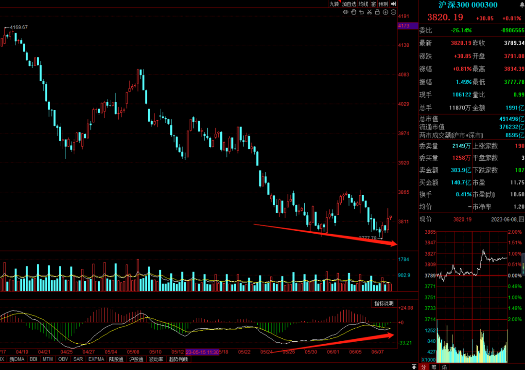 小级别看,沪深300的60分钟在今天新低后已经有底背离了,这是个积极的左侧信号,如果右侧阳线出来,这里做成底部的概率是不小的。