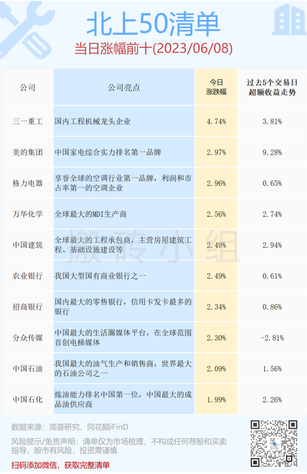 北上50榜单表现还不错,传统价值股领涨,市场风格开始向这边转移了。