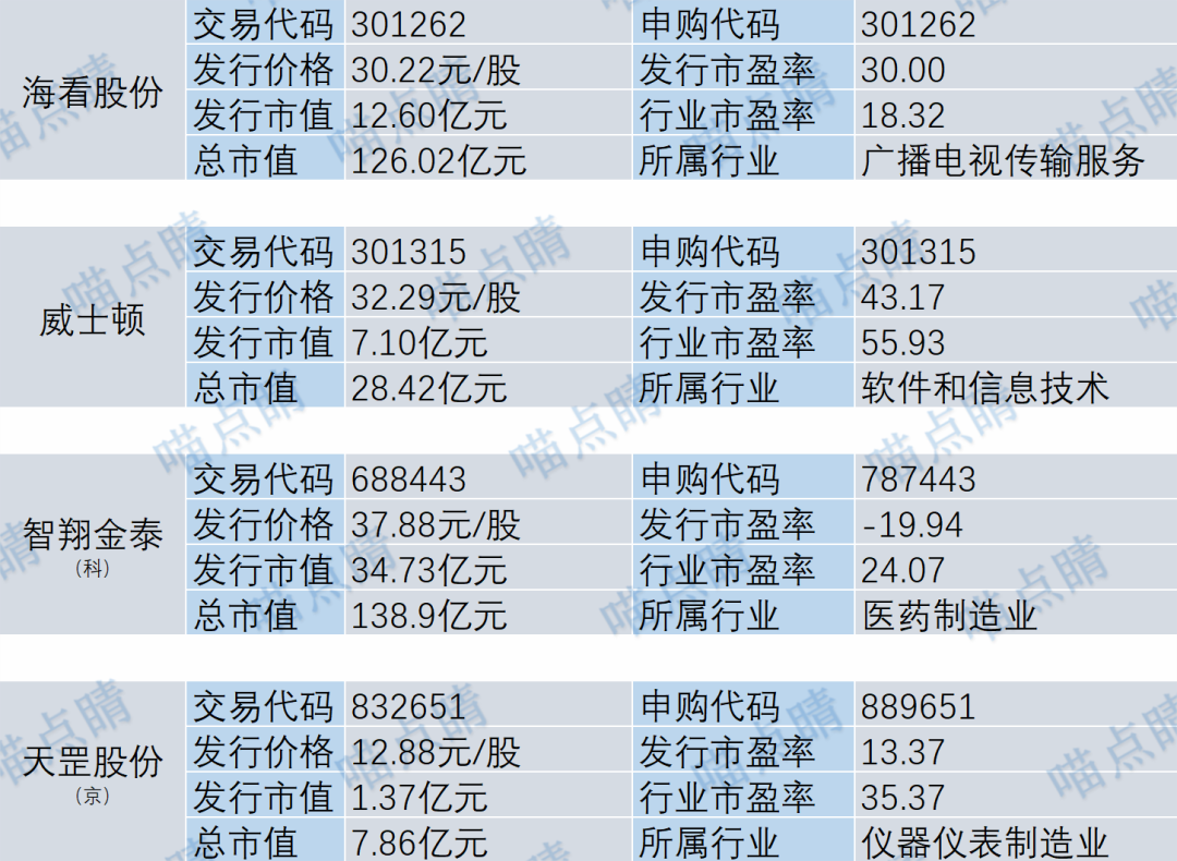 海看股份主营业务包括IPTV业务和移动媒体平台服务业务,公司独家运营与山东IPTV集成播控相关的经营性业务;威士顿主营业务是致力于提升客户生产、经营过程数字化、网络化、智能化水平的软件开发和信息化服务。这两家公司各项指标对应破发率较低。
