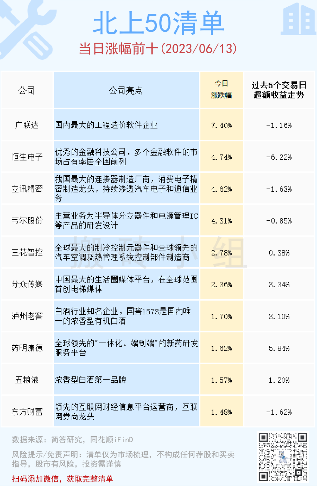 北上50榜单上榜的大多是科技龙头股,市场当下科技风格非常强,还没有看到终止的迹象。