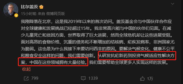从1972年发现青蒿素到2021年WHO宣布中国清零疟疾,50年的时间真算是一个持久战了。我们得到的经验是很真切的,盖茨为了帮助其他国家来了解也是应该。当然还会有更多的议题,等待公报出来再看吧。