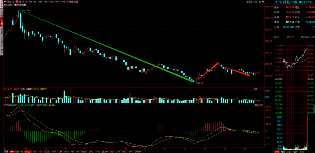 看恒生科技会更明显一些,这两周强势的感觉又回来了。长期看,1月底的高点是大周期级别的2浪回调的开始,看短确实比较难,但如果眼光放长,这其实是很正常的调整。周线级别看一眼就有感觉了,这里依然是性价比很高的低位区域。