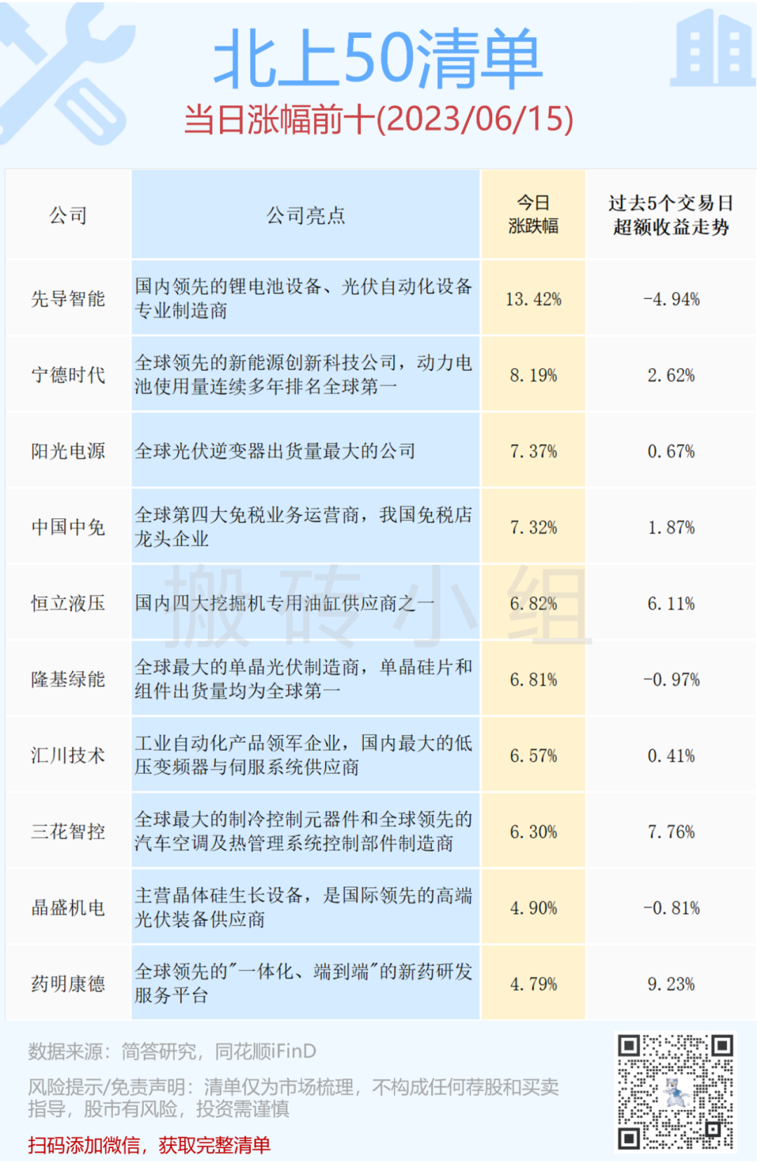 北上50榜单上榜的都是制造业龙头,跌幅巨大的新能源反弹最猛,贝塔属性特别强。