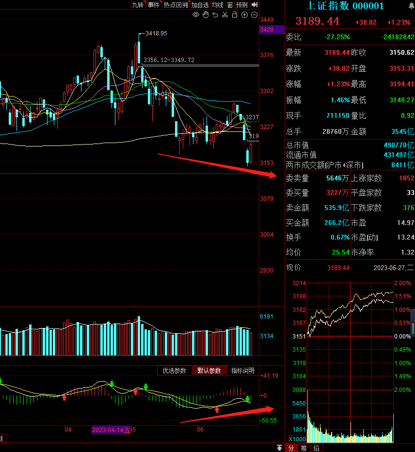全市场成交额8400亿,相比昨天缩量了1400亿。快速缩量反弹是抛压抑制的信号,这里确实没有多少空头想要卖出了,但今天这个阳线也不能说明多头特别强。