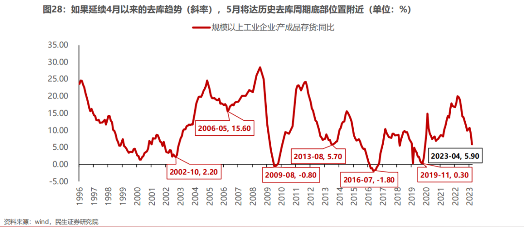 最近在准备下半年的策略,看到一张图还挺有意思的。库存周期当下已经接近低位,如果按照4月的斜率,5月将达到历史去库周期底部附近了。