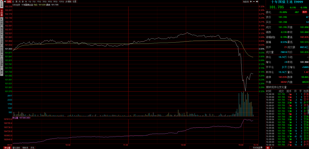 另一个信号是尾盘国债期货发生了跳水,这跟汇率的波动发生了共振。这说明对经济悲观预期的定价已经告一段落,后续要向正面看了