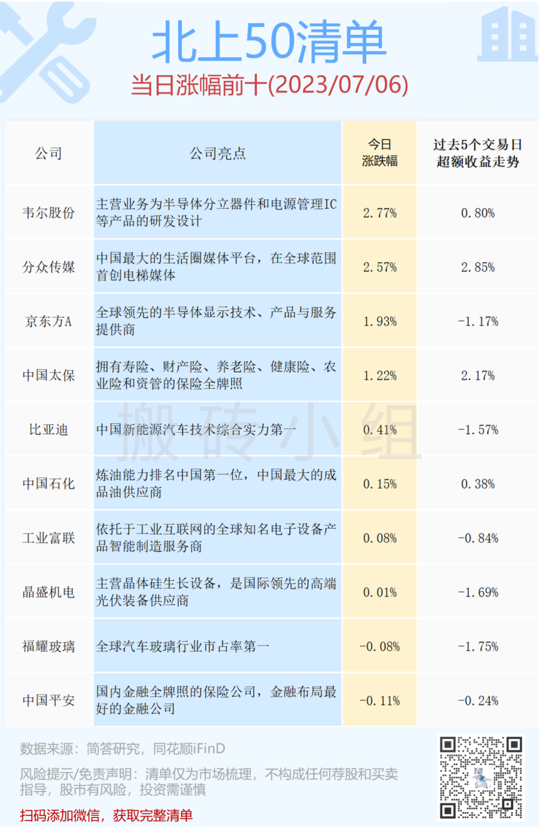 【北上50涨幅前10】