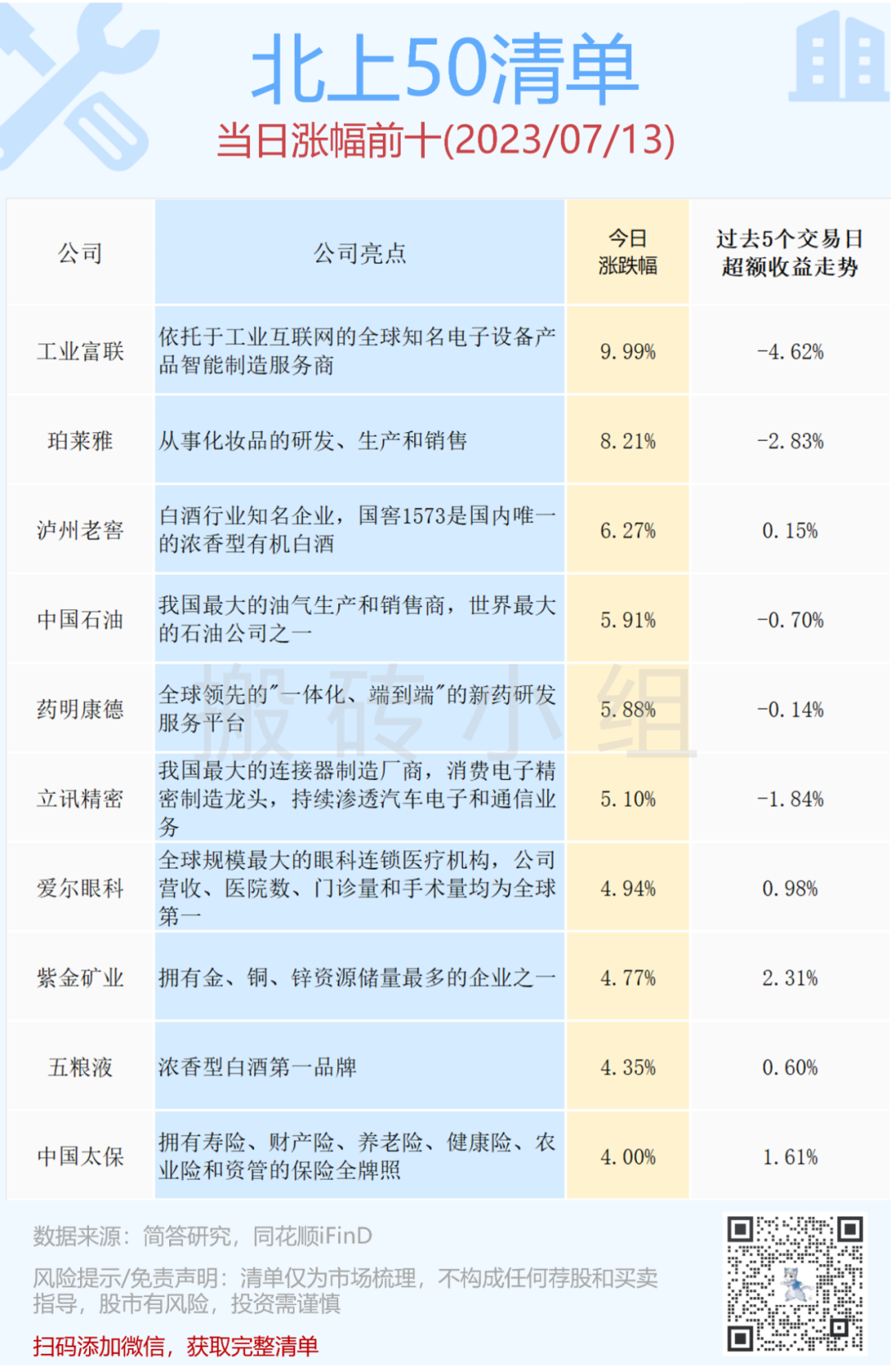 北上50今天普涨,而且上榜的涨幅都很大,这跟北上大幅度流入是有很大关系的。权重股的回归表明市场在对经济预期进行修正,是个很好的状态。