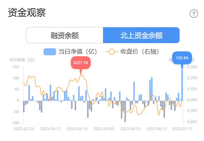 北上资金今天大买135亿,日内非常积极,并且已经连续流入4天,中期观察转为积极。