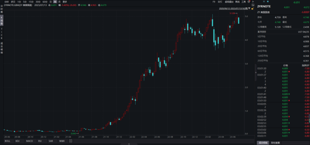 当前美国CPI已经回落到3%的水平了,这是我们要非常重视的一个变化。美国2年期国债收益率从2021年9月开始抬升,到高位已经横盘8个月了,这一段横盘的时间就类似温水煮青蛙,目的就是把通胀给熬下来。