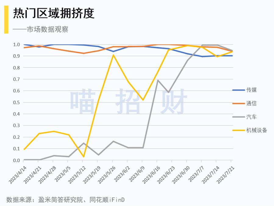 在拥挤度下行的情况下,很难有行业的贝塔行情,热门区域里是AI、汽车和机器人,这几条线有大波动都是正常的,但当下看震荡的概率更大,没有看到趋势的可能。