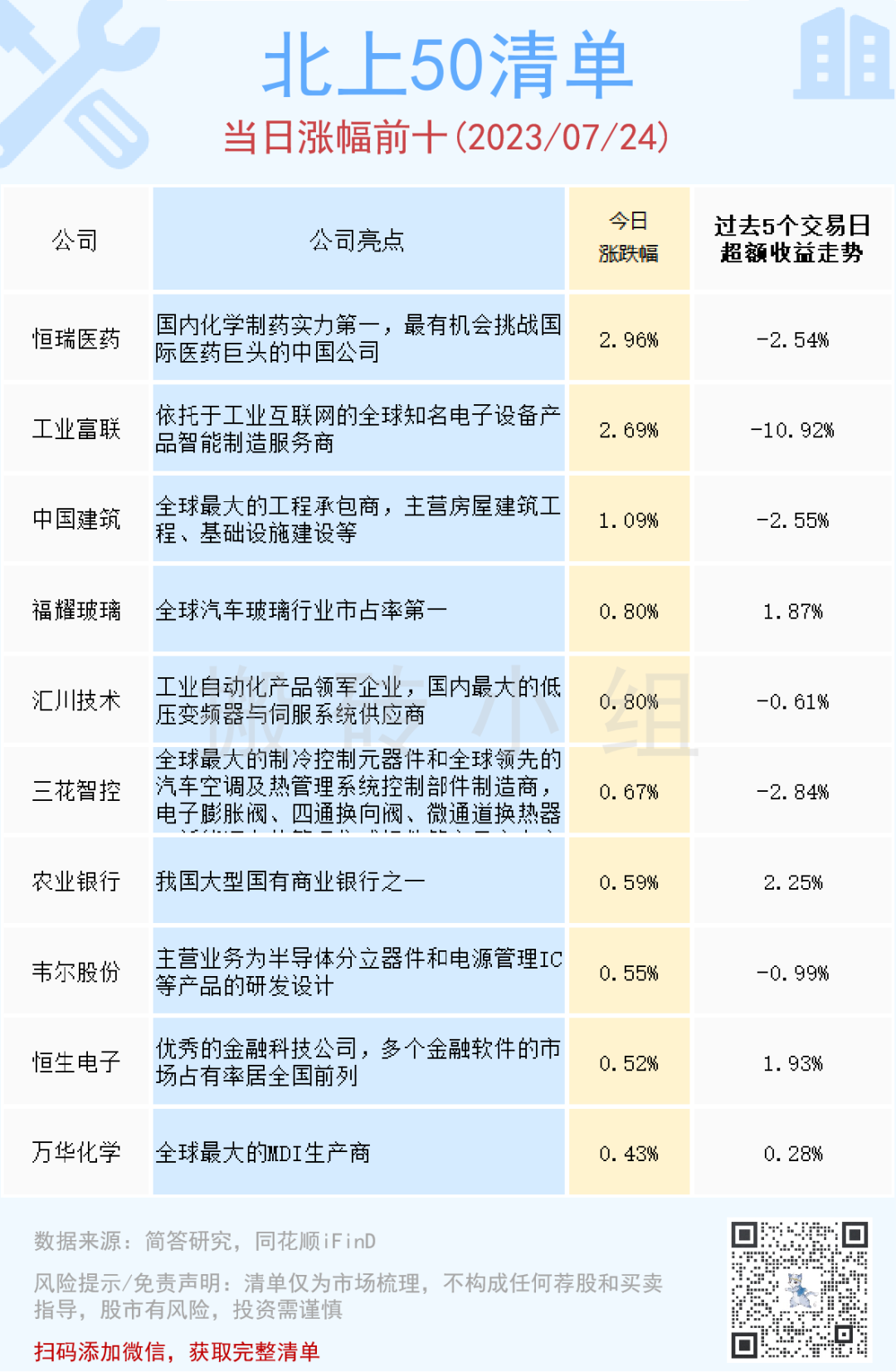 北上50榜单普跌状态,没有亮眼的方向出现。