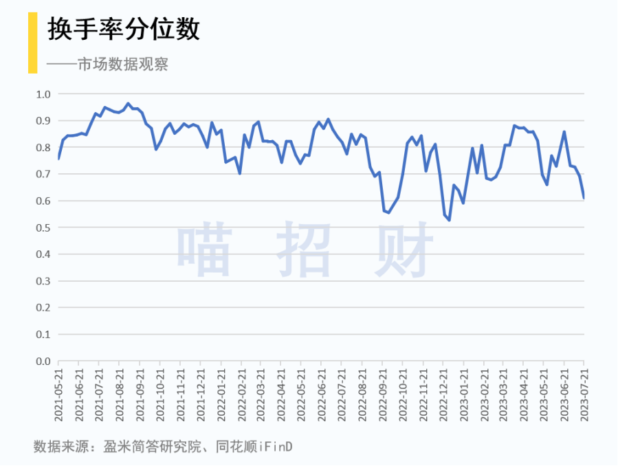 总量角度,换手率分位数下降到61%的位置了。历史上看接近60%后比较容易出现流动性的低点,但价格低点往往会出现在流动性低点之后,简单说就是可能会有一个短期放量的空头出清,当下看这种情况的概率是比较大的。