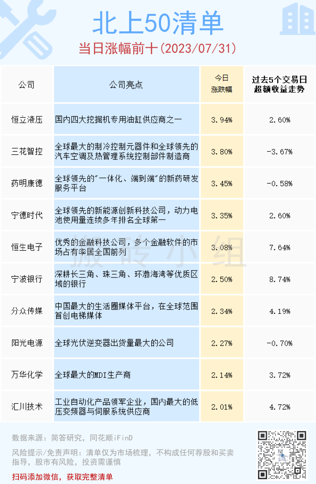 北上50榜单分化较大,上榜的不算特别突出,不多说了。