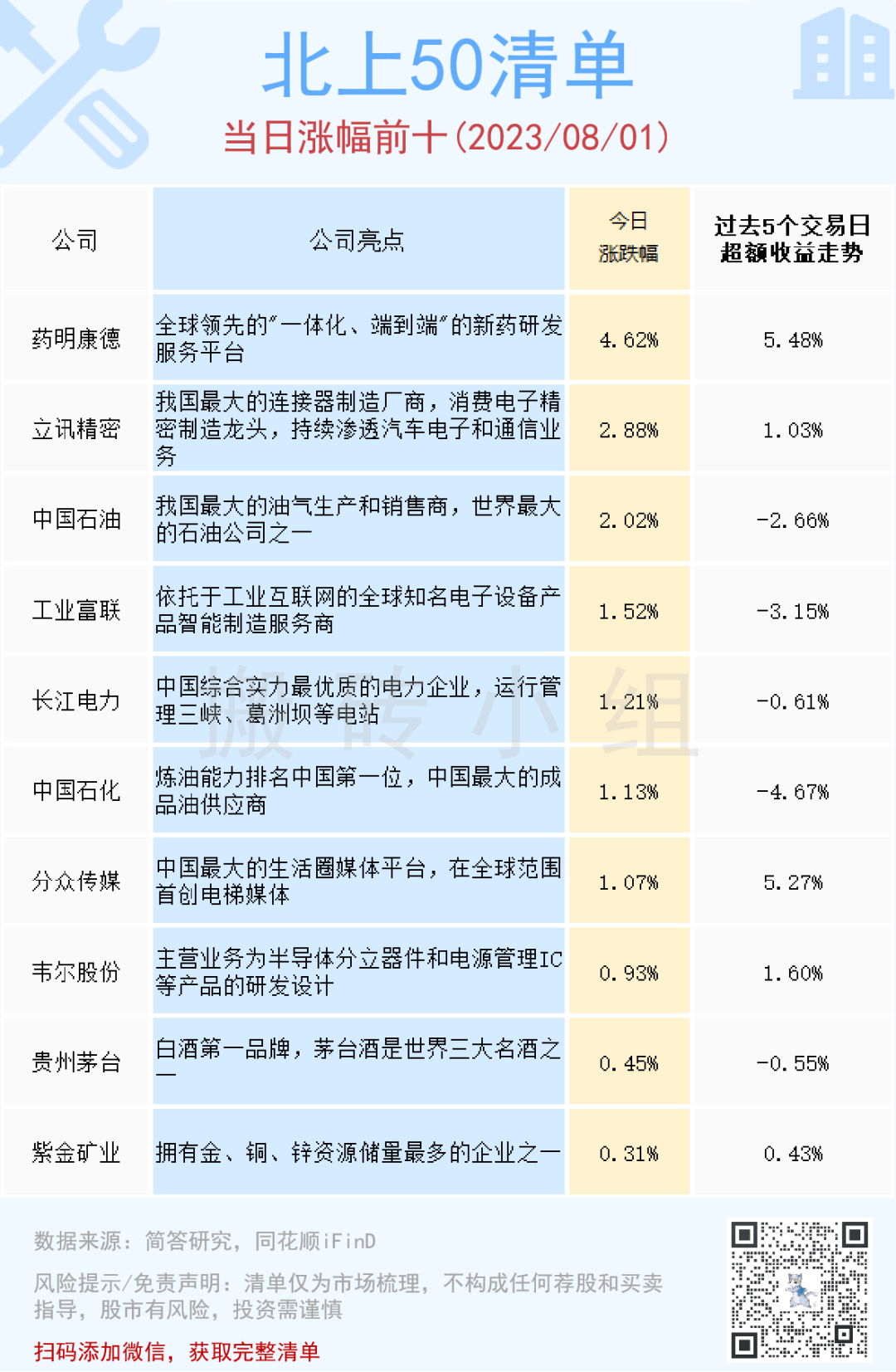 【北上50涨幅前10】