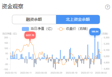 北上资金今天流出50亿,日内偏空,中期保持积极态度观察。