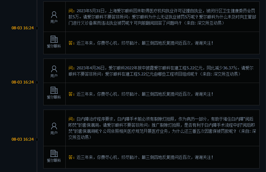 这不是最近唯一一个上市公司跟股民开怼的,前几天就看到群里在转发,某著名医药公司在互动易平台怼投资人的疑问,有一些问题其实应该回答的,但董秘/证代都选择拒绝回答的方式来处理了。
