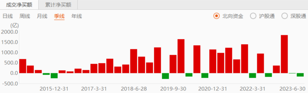 内资这几年的问题在于长期资金流入缓慢,占比始终上不去,同时公募私募由于资金属性和考核机制等原因,操作行为散户化。说白了,内资目前没有能够起到压舱石作用的主心骨,更多是助涨助跌性质的资金。所以在环境低迷时,整齐划一的外资反而显得更有存在感和主导性。