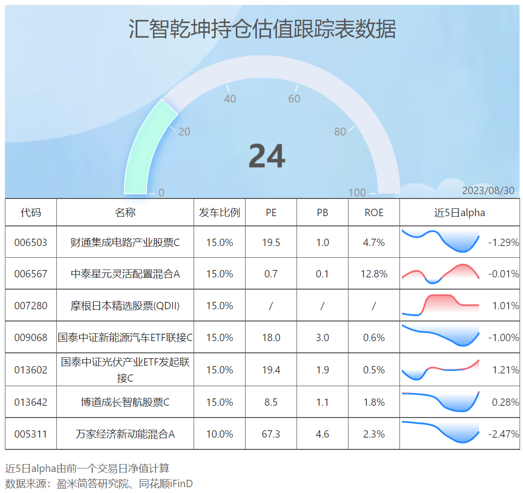汇智乾坤昨天表现也挺不错,其中科技方向配的泰信中小盘、中欧瑾和以及信澳领先涨幅都超过了5.5%,跑赢了科创50,比较难的主观基金经理终于回血了。
