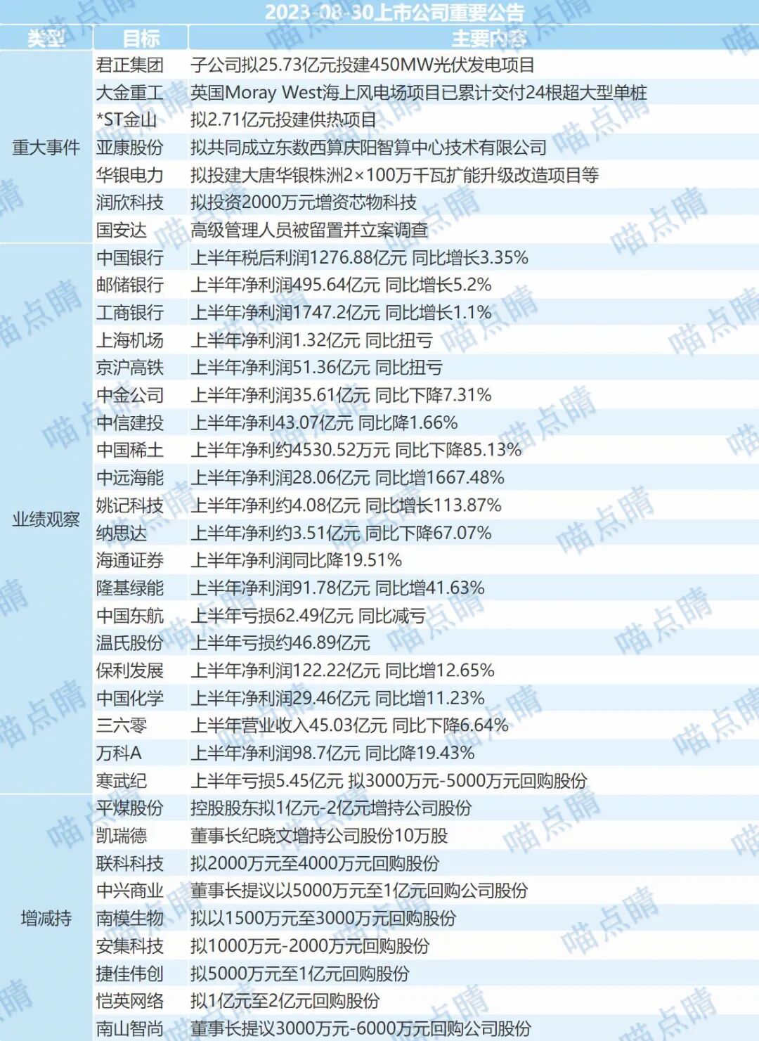 4、万科上半年净利润98.7亿元,同比-19.43%。今年上半年有超六成房企亏损,对比之下,最先喊出“活下去”的万科展现了较高的韧性。另外,基于公司股价处于低位,决定终止A股定增事项。再融资终止了,这可能也与周末的政策有关。