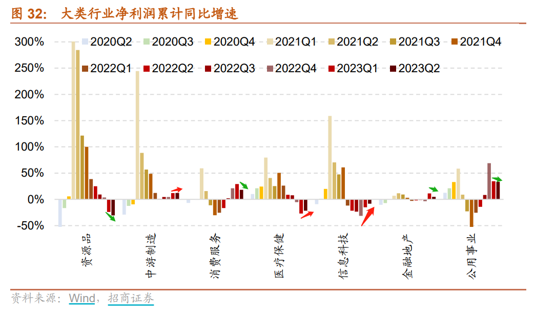 市场一直都是在找净利润增速上行的资产,从大类行业的角度看,中报向上的是制造、医疗和科技。制造业原本就为正,向上幅度比较小;医疗本季度是首次开始回升,最差的时候或许已经过去了。