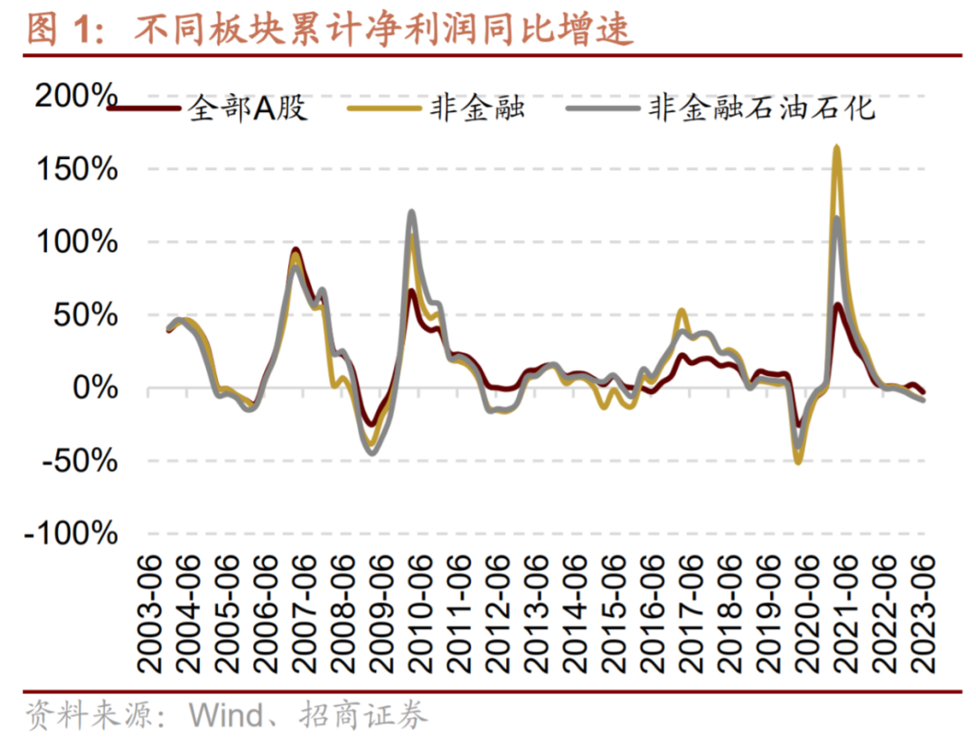 首先是全市场的净利润增速,除开金融和石油石化整体转负了。历史上看净利润增速和指数有一个规律,当高位刚开始回落的时候,市场会随之回落;但进入到负值的时候,市场就会预期逆周期,反而股市会有机会。