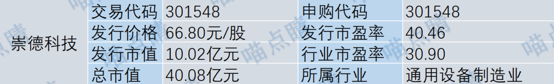 崇德科技主营业务是动压油膜滑动轴承的设计及研产销,公司自主研发的动压油膜滑动轴承产品是重大装备、高精设备的关键基础零部件。从历史统计来看,公司发行价格对应破发率较高,不过鉴于公司市值不大,以及目前新股生态依然较好,整体破发概率可接受。