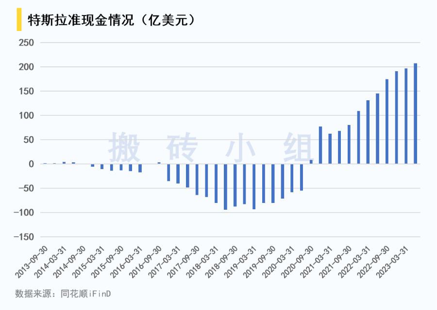高现金的流入反映在财务报表上,就是特斯拉的准现金情况持续上升。在扣除掉有息负债后,特斯拉当前准现金已经超过200亿美元了,这就是他们能自己走向下一个阶段的资本。