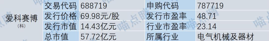 爱科赛博专注于电力电子领域20余年,以电力电子变换和控制技术为基础,构建了高密度功率变换技术、高精度智能控制技术和产品化支撑技术三大技术平台。从历史统计来看,公司发行价格和发行市值对应破发率较高。不过考虑近期新股上市表现普遍较好,整体破发概率可接受。