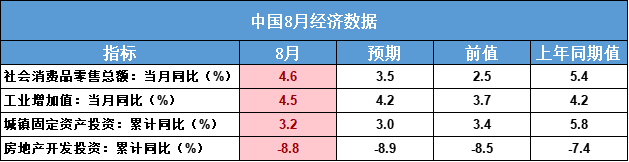 整体8月数据还是比较超预期,社零、工业增加值都有触底反弹的架势,虽然反弹的斜率不算大,但毕竟已经往上走了,后面在一系列降息降准等利好政策推动下,经济延续温和复苏的概率是非常大的。