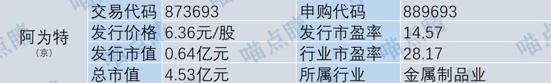 阿为特主营业务是精密机械零部件设计及研产销。公司是北交所的,中签需先缴款,中签收益率也比较低,大伙自行视情况考虑吧。
