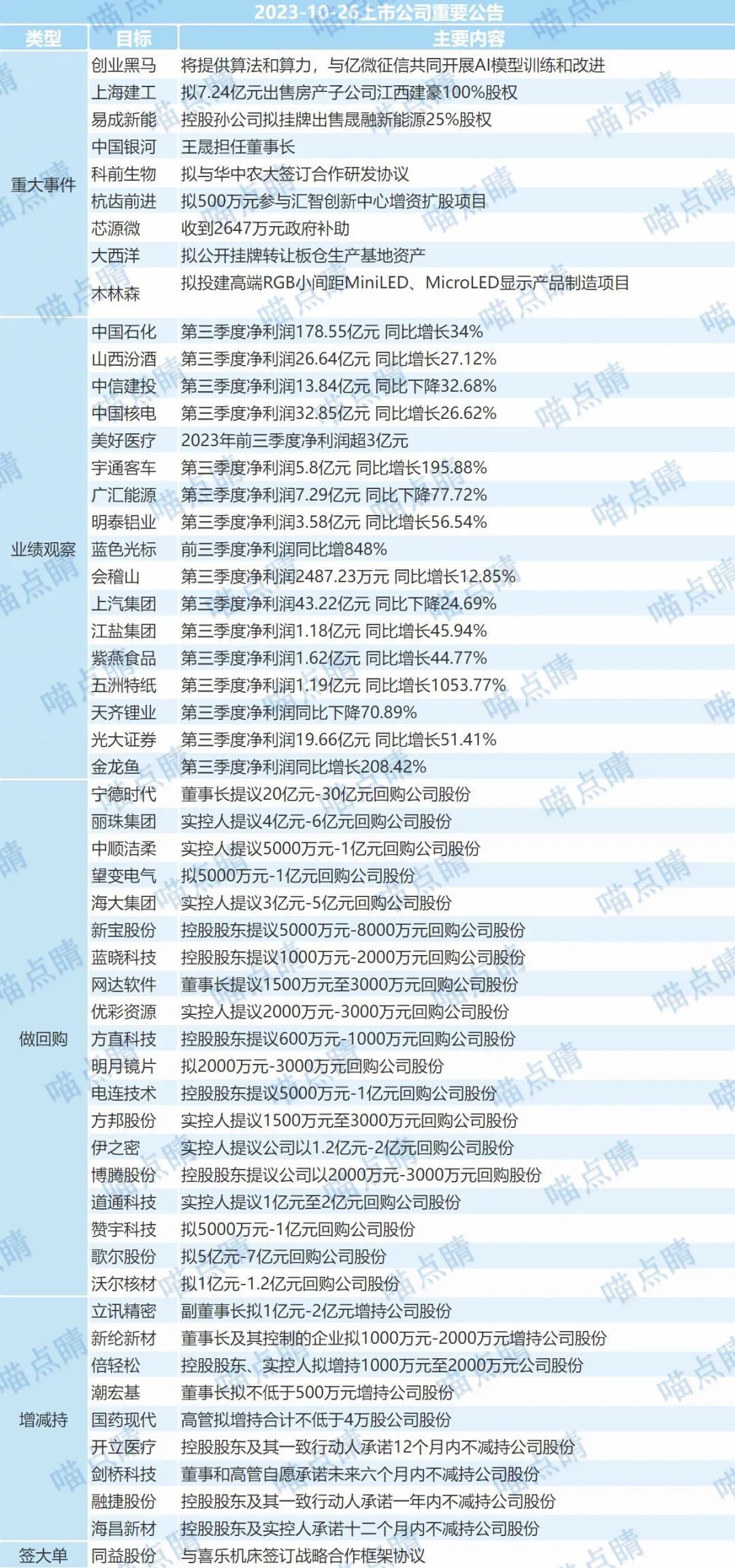 1、中国人寿第三季度净利润0.53亿元,同比-99.1%。人寿投资业务波动挺大的,过去也有过类似的表现,当然也因为投资赚过大钱,三季度的市场状况人寿也没太做好。对此,管理层呼吁要理性看待权益市场的波动,并预计四季度会好一些,这点就不知道市场认不认可了。