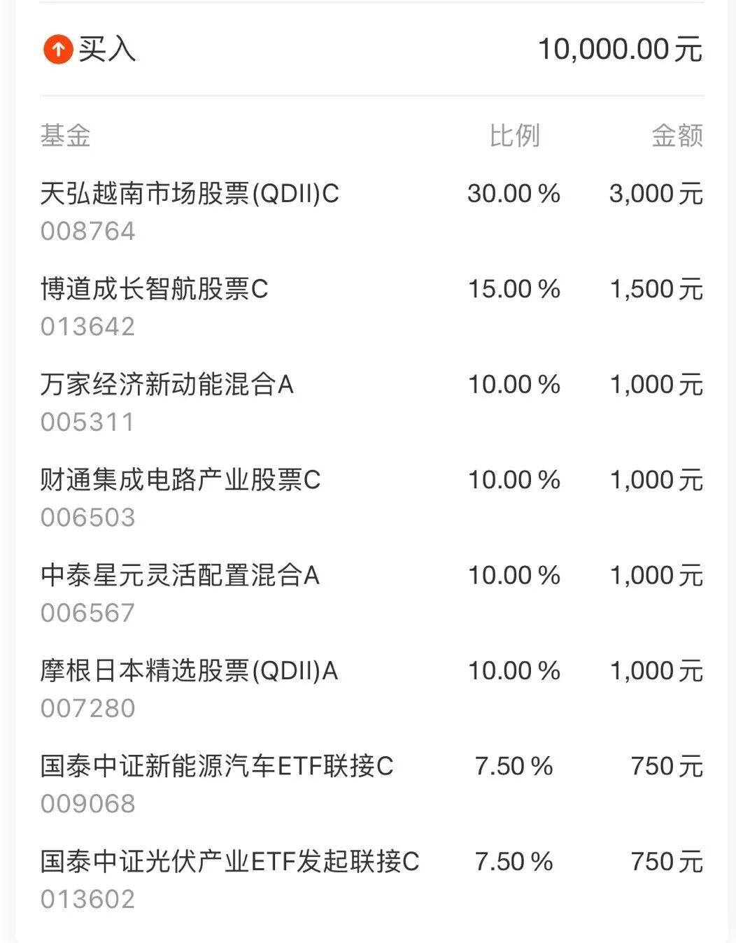 1.因为周五没更新文章,还是跟大家说一下发车的这个事儿,周五我们天弘越南市场C的发车比例有提升到30%,摩根日本精选发车比例的是10%,其余的在方向上跟点睛基本一致,坚持三好原则。汇智持续增配QDII资产,主要是为了提升一下组合的分散度,我们做看世界直播也是为了让大家的视野能更开阔一些。这两个方向的资产研究了比较久,也聊过非常多次,定投参与。